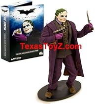 Dark Knight THE Joker (Heath Ledger) 1/6 Scale Collector Figure Doll = with real cloth outfit! Looks just like him! Extremely RARE!! by DC DIRECT! Gotham City's wickedest villain becomes a 1:6 scale figure! Dressed in an intricate fabric costume consisting of a shirt, tie, vest, blazer, pants, overcoat, and loafers, and including movie-specific accessories of three knives, a handgun with removable clip, a bank robbery mask, and three sets of hands, THE figure also comes with a display stand. Packaged in a deluxe 4-color window box with a fifth panel. Limited Edition!