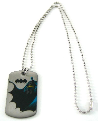 Batman The Dark Knight Dog Tag & Chain Necklace! Batman is one of the most popular fictional characters around. This new dog tag captures the intimidating nature of the character that is known as the Dark KnightDog Tag Details* Condition: New* Color: Silver, Blue Yellow, Black